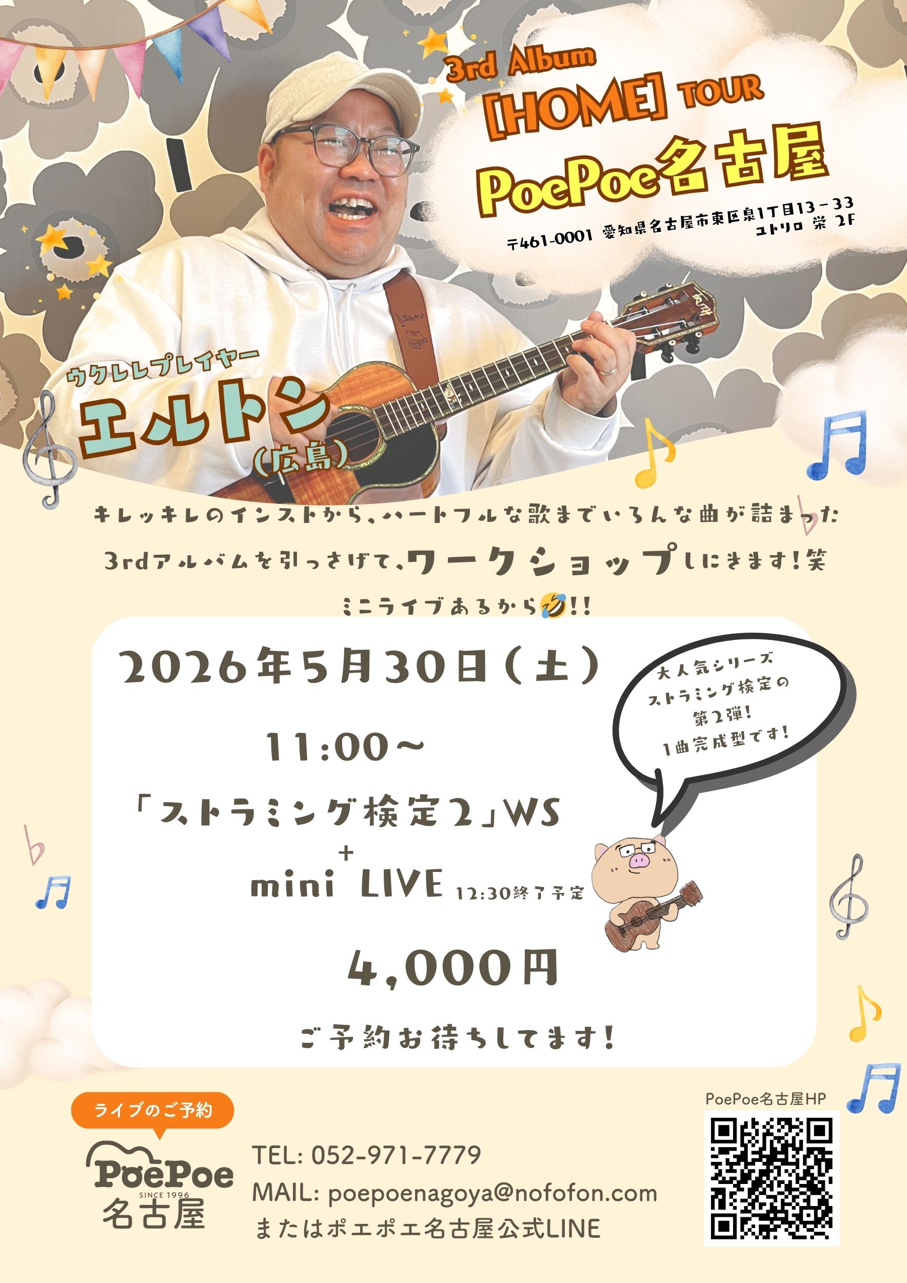 全国で活躍するウクレレ&ギタープレイヤー、エルトンさんがポエポエ名古屋で