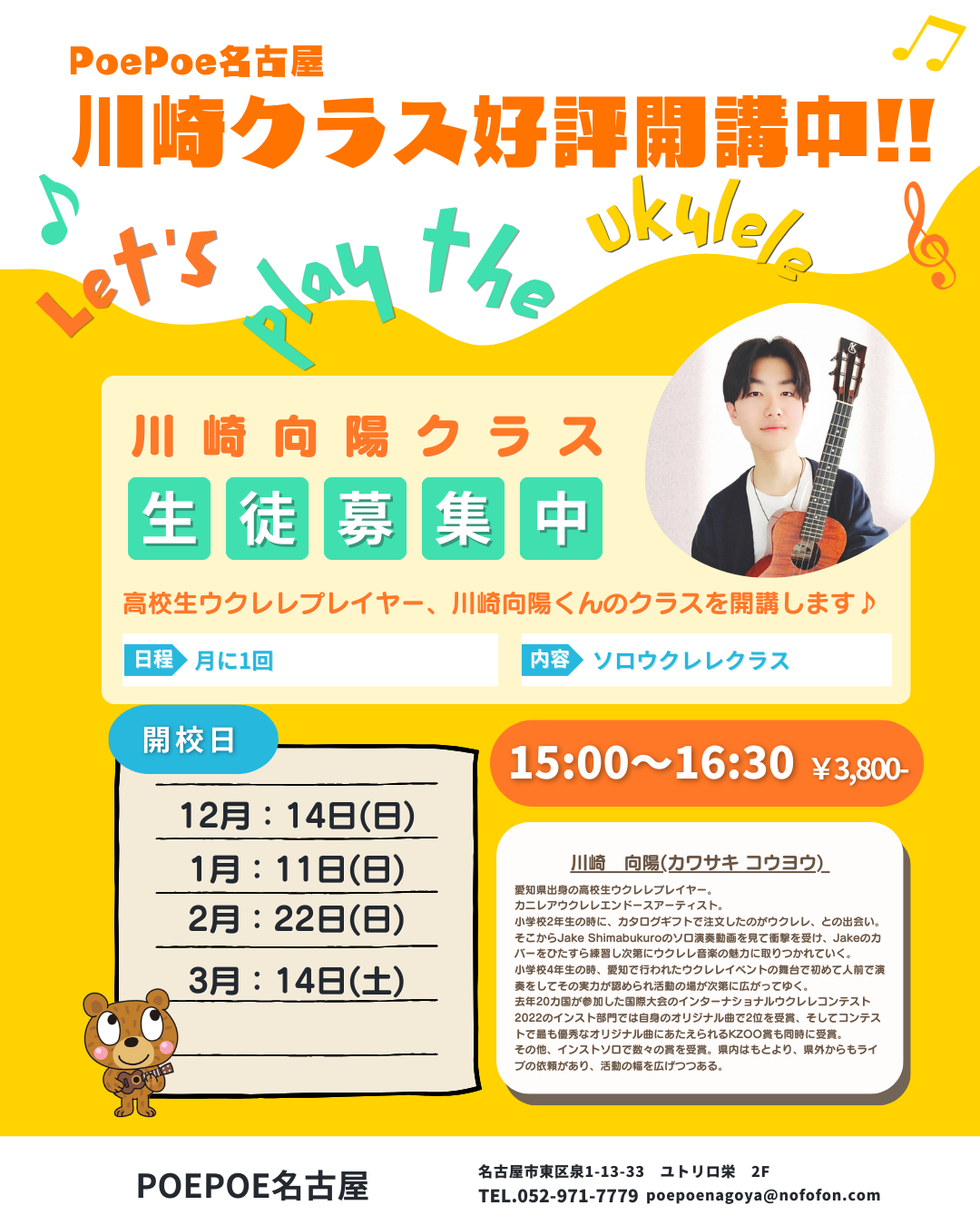 2025年4月より川崎向陽先生のウクレレ教室「川崎クラス」を開講いたします。