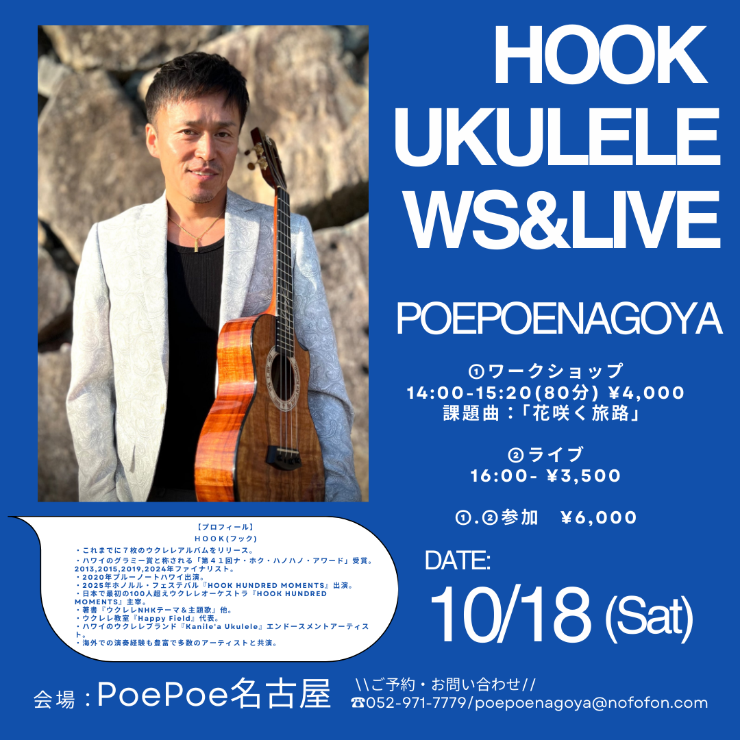 HOOK ウクレレワークショップ&ライブ【ポエポエ名古屋】